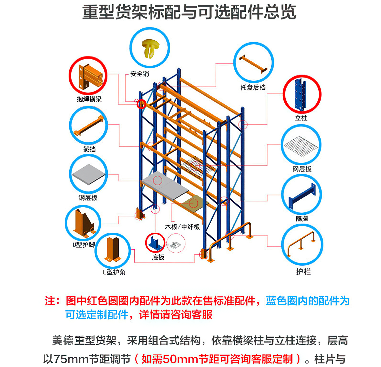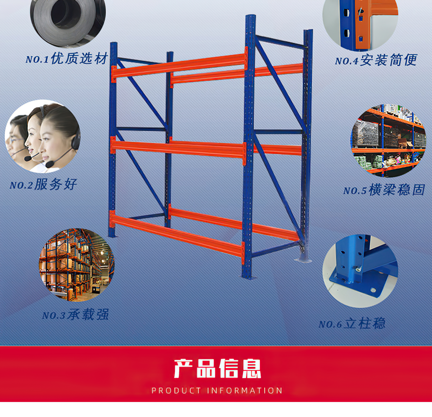 橫梁式貨架是以存取托盤貨物為目的的專業倉庫貨架(每個托盤為一個貨位,因此又被稱為貨位式貨架);橫梁式貨架由柱片(立柱)、橫梁組成,橫梁式貨架結構簡潔、安全可靠。根據用戶實際使用情況:托盤載重要求、托盤尺寸、倉庫實際空間、叉車實際提升高度,提供不同規格的橫梁式貨架以供選擇。橫梁式貨架結構簡單、安全可靠,可任意調整組合,出入庫不受物品先后順序的限制。廣泛應用于以托盤存儲、叉車存取的倉儲模式。