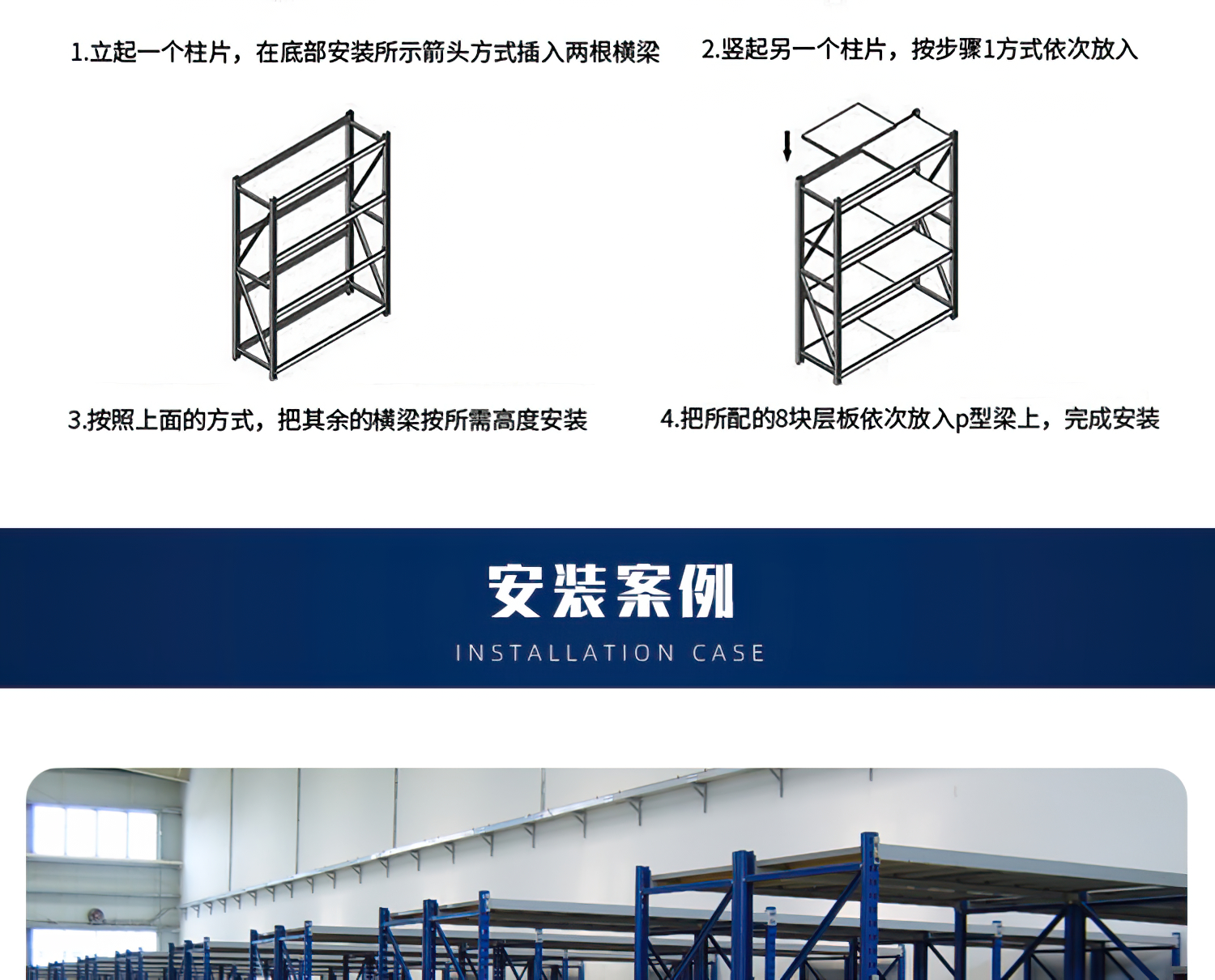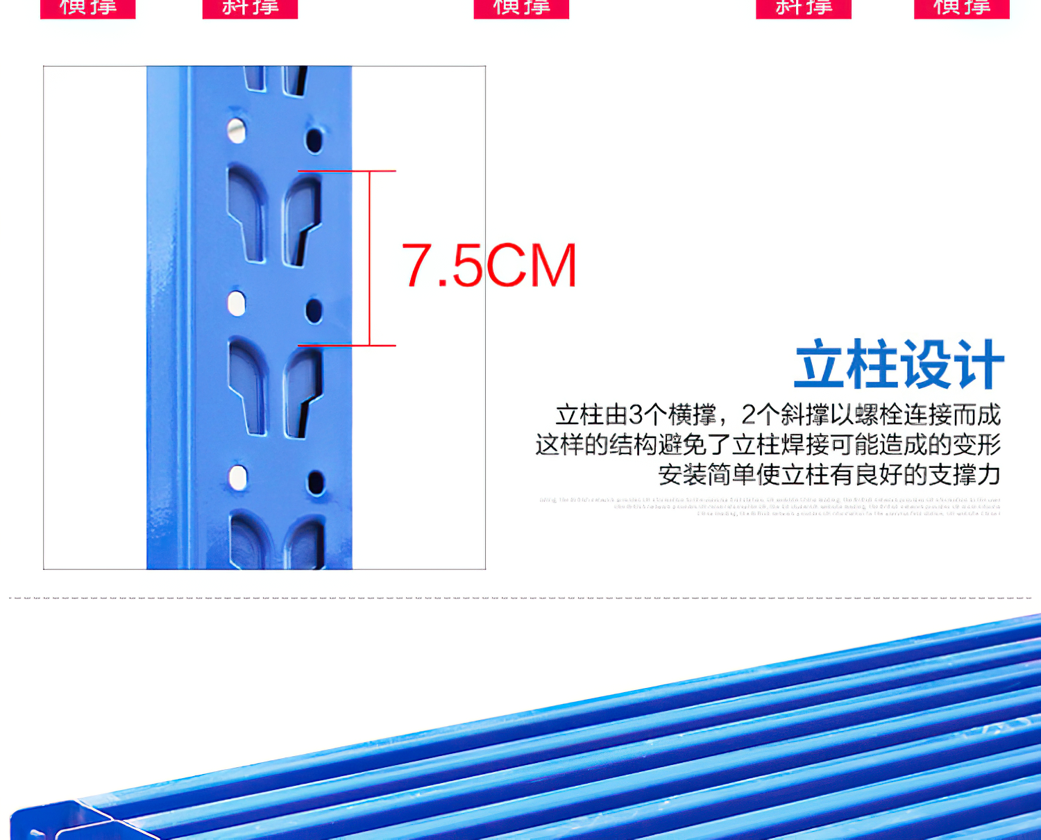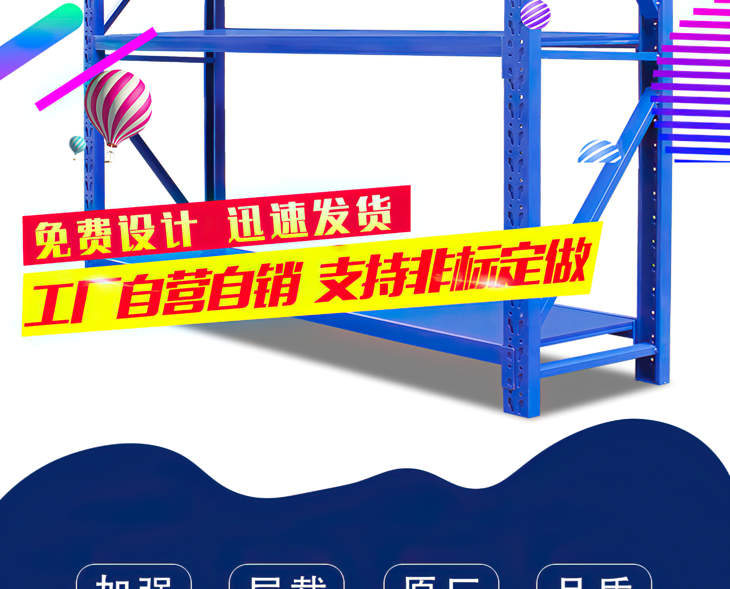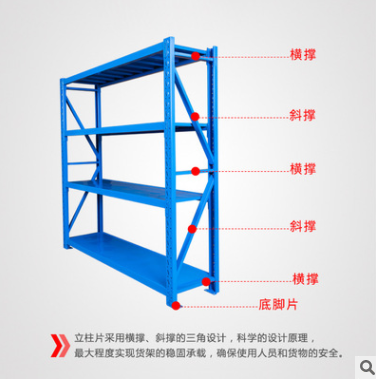 中型倉(cāng)儲(chǔ)貨架采用立柱片與橫梁掛接結(jié)構(gòu),拆裝方便,層板50mm可調(diào),均載下層載可達(dá)200-600kg(貨架載荷絕大多數(shù)是以層為單位的承載量計(jì)算)。貨架跨度可達(dá)2400mm,層板可選用鋼板、木層板(夾板)。擱板式中型貨架是按貨架的承載量來(lái)區(qū)分與命名的,按照這一劃分原則擱板式中型貨架在所有倉(cāng)儲(chǔ)貨架中的承載量是介于擱板式輕型貨架和擱板式重型貨架之間。