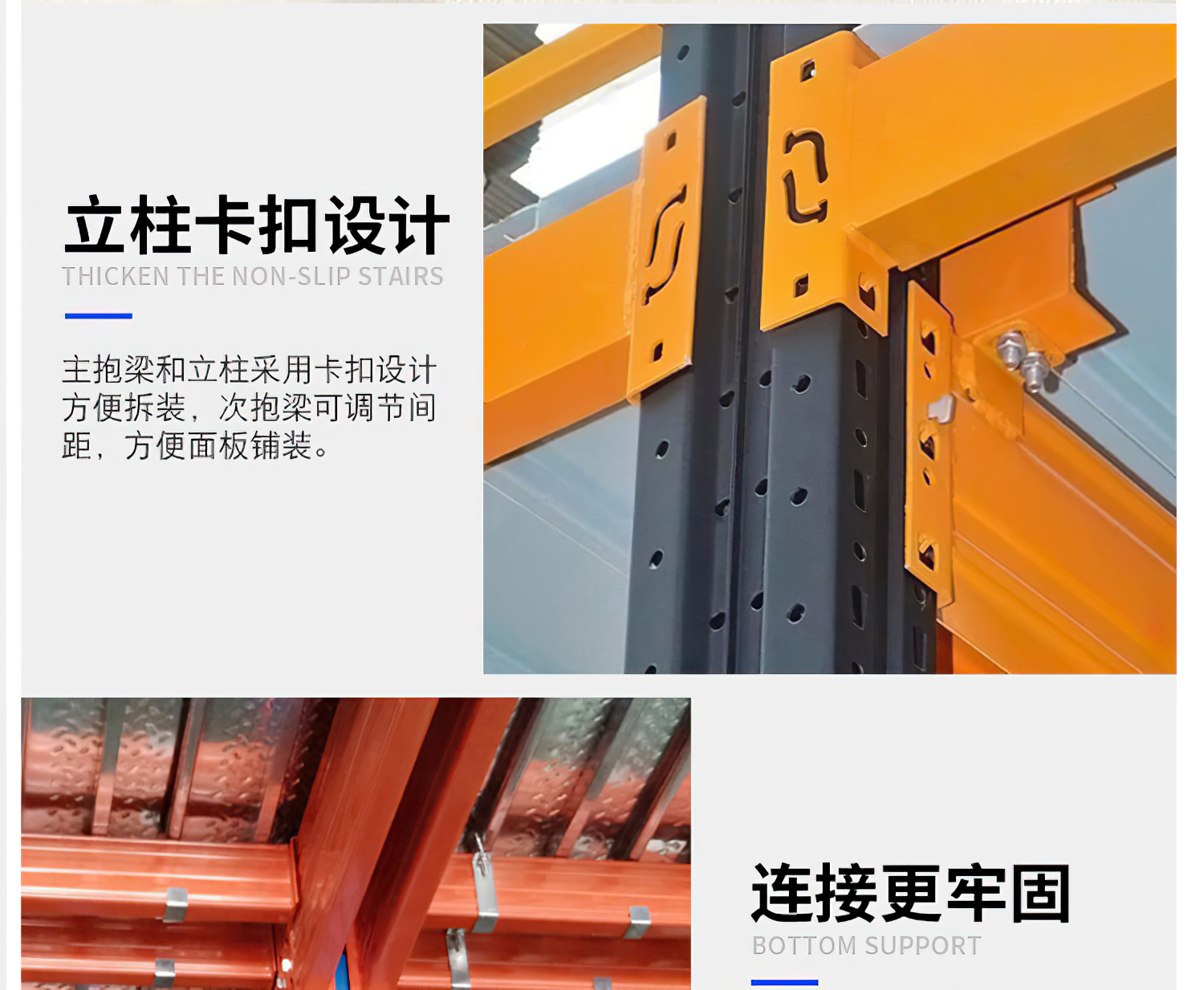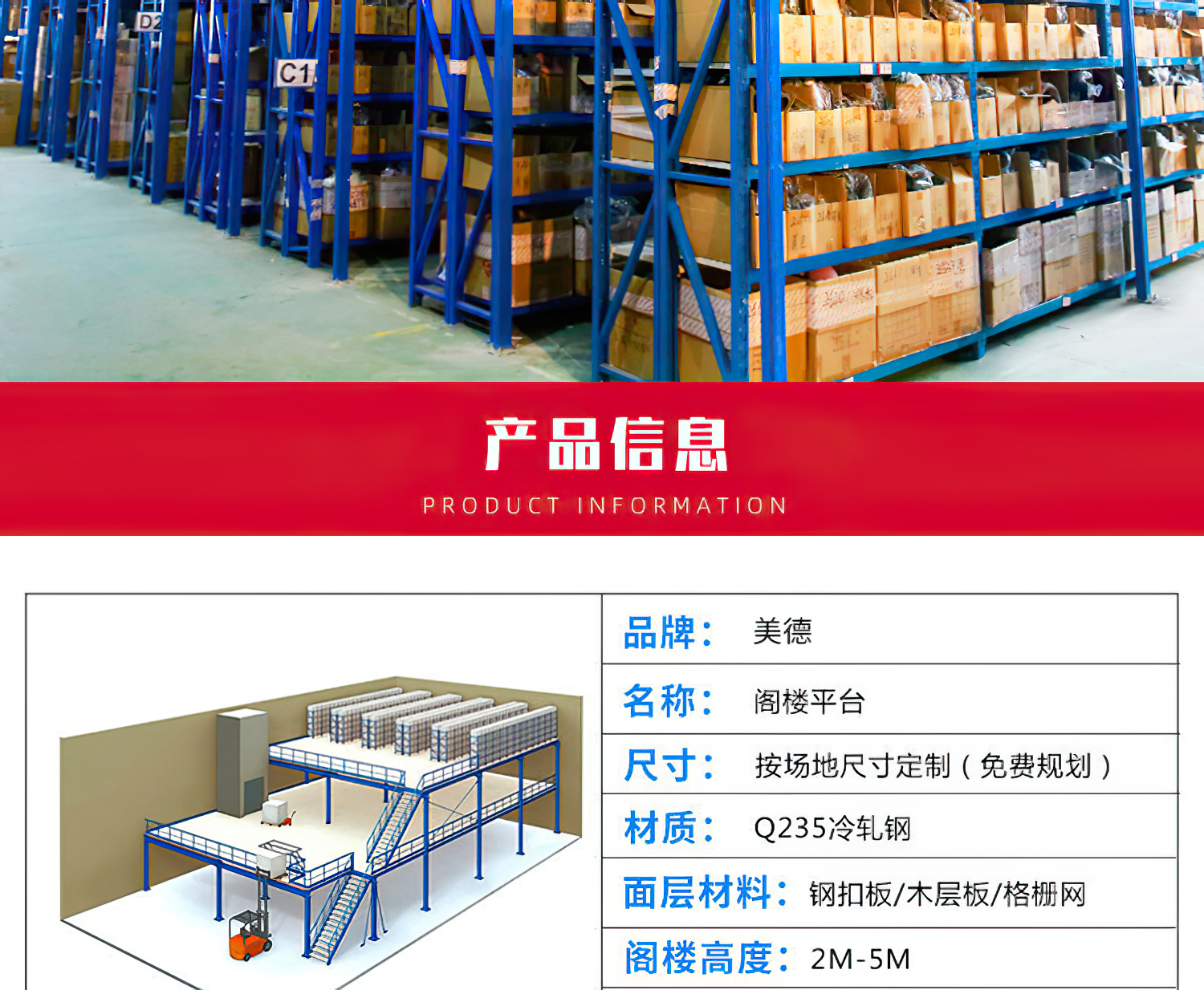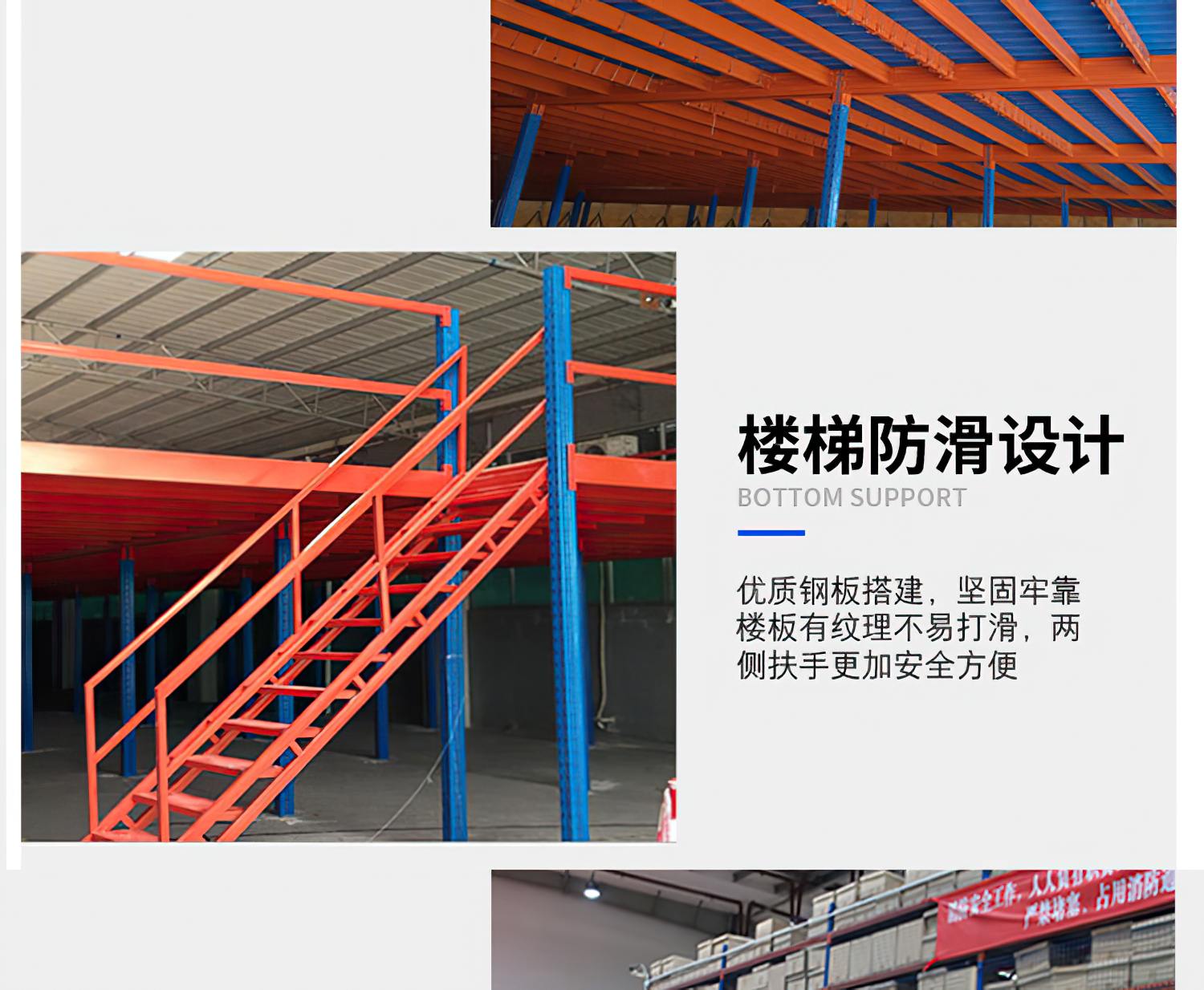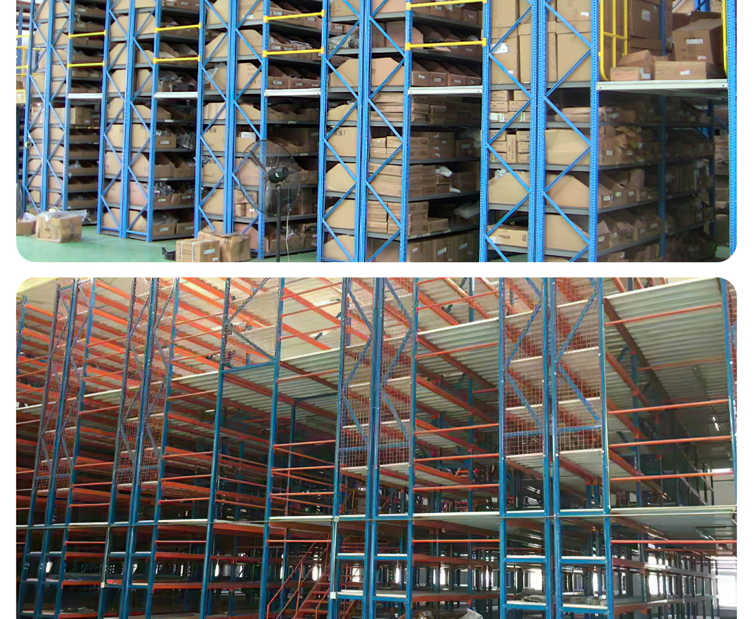 閣樓式貨架系統,通常利用中型擱板式貨架或重型擱板式貨架作為主體支撐加上樓面板(根據貨架單元的總負載重量來決定選用何種貨架),樓面板通常選用冷軋型鋼樓板、花紋鋼樓板或鋼格柵樓板。 ??閣樓式貨架系統是在已有的工作場地或貨架上建一個中間閣樓,以增加存儲空間,可做二、三層閣樓,宜存取一些輕泡及中小件貨物,適于多品種大批量或多品種小批量貨物,人工存取貨物.貨物通常由叉車、液壓升降臺或貨梯送至二樓、三樓,再由輕型小車或液壓托盤車送至某一位置。