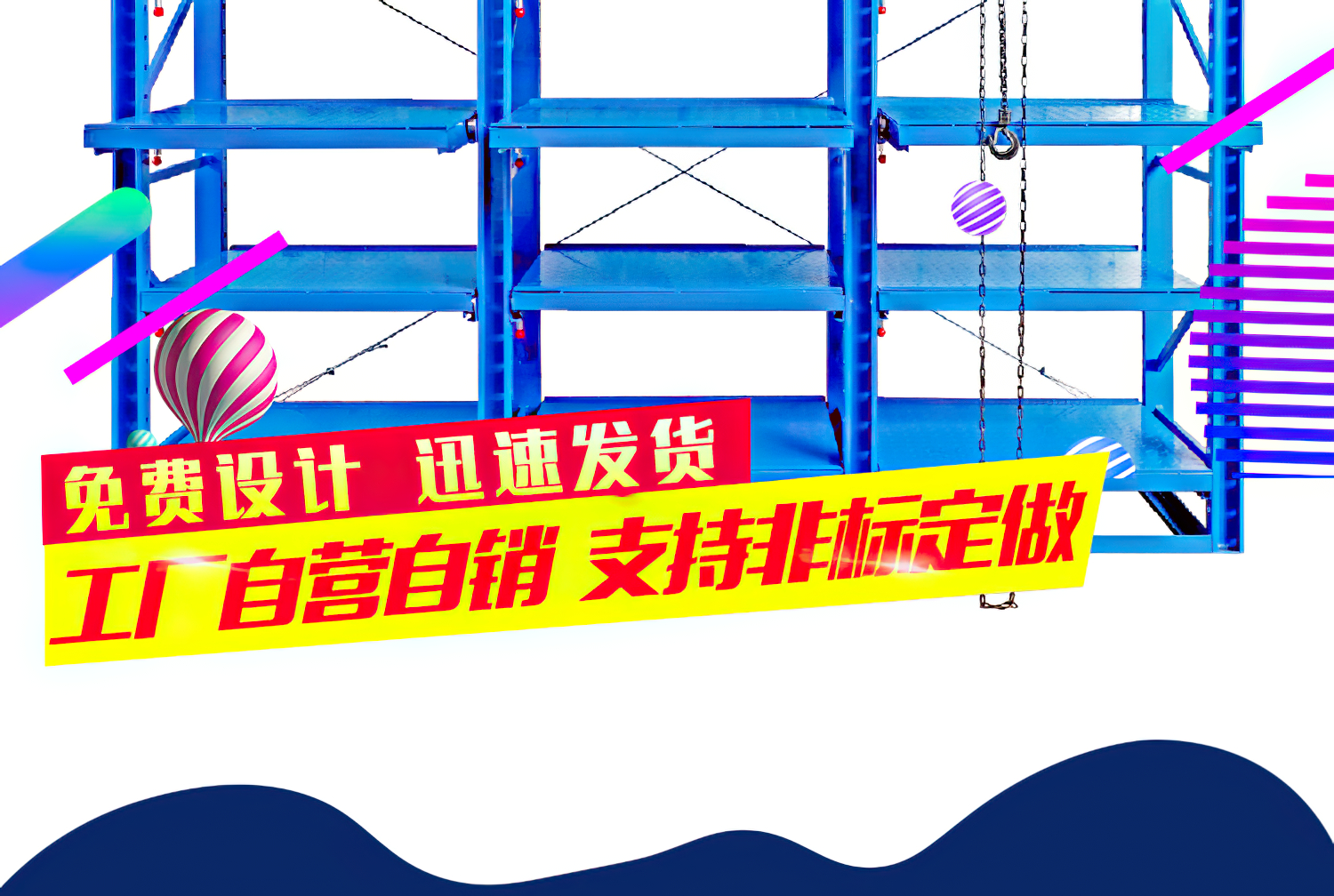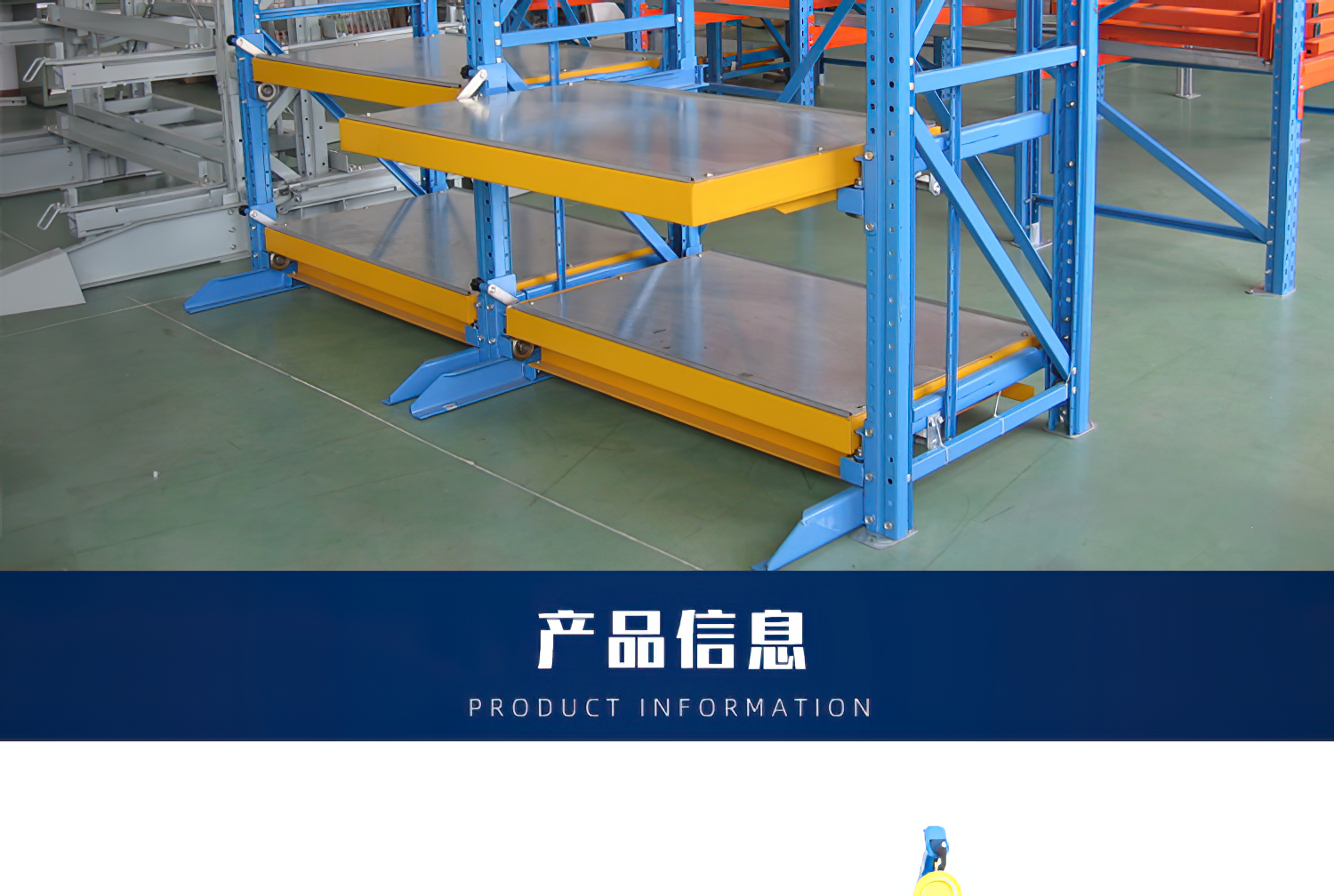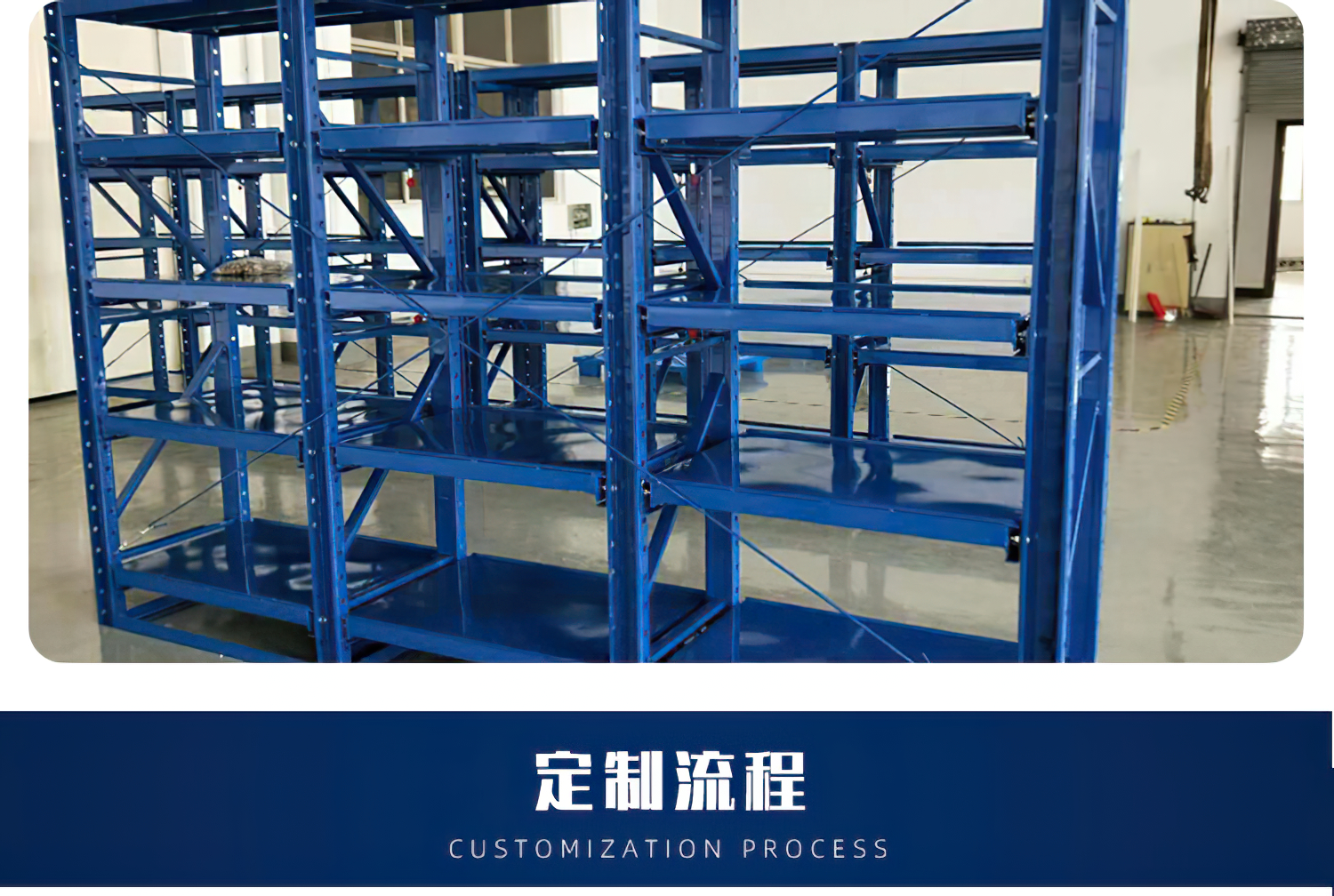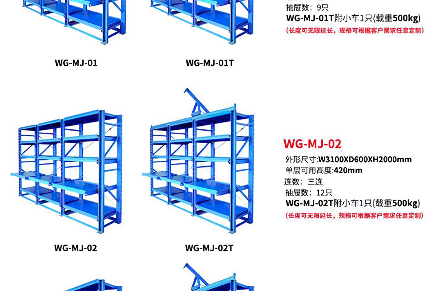 抽屜式貨架通常用于存放模具等重物,無需叉車,頂部可配置移動葫蘆車(手拉或電動),可實現模具的起吊,抽屜板底部都設有滾輪軌道,抽屜板承載后仍能自由的拉動,附加定位保險裝置。滾輪軌道是用模具一體成型,精度極高,有極高裝配精度,所以滾輪使用壽命大大延長并且使用時拉出或推入很省力。貨架高度一般在2.5m以下,除頂層外均可設計制作成抽屜式結構,可輕松抽出1000kg/層以內的重物,輔之以行車或吊葫蘆,輕松實現貨物的存取作業。